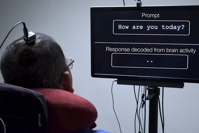 Dopo aver impiantato elettrodi ad alta densità sul cervello di un paziente paralizzato e incapace di parlare in modo comprensibile, un team di neurochirurghi e ingegneri dell'Università della California di San Francisco per la prima volta è stato in grado di trasformare le onde cerebrali in linguaggio, permettendo la comunicazione di intere frasi attraverso uno schermo.