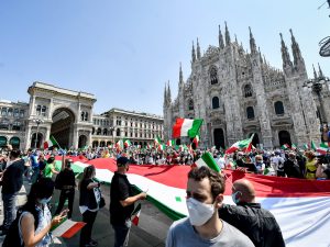 Un migliaio di militanti di Lega, Fratelli d'Italia e Forza Italia - ma erano presenti anche alcuni esponenti di formazioni di estrema destra - hanno manifestato nel centro di Milano per difendere "l'orgoglio lombardo" e l'operato del governatore Attilio Fontana. Dalla folla si è levata più volte la richiesta di dimissioni del governo e risposte immediate a imprese e famiglie.