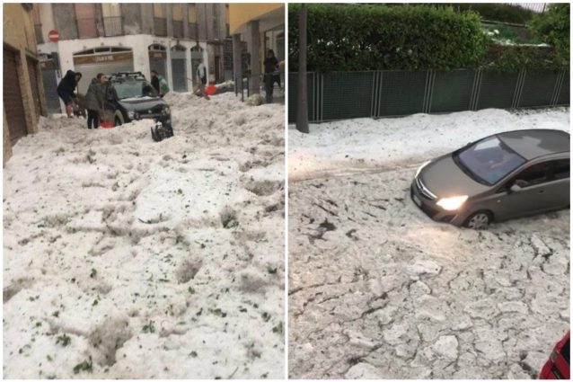 Strade chiuse, alberi caduti, allagamenti e decine di interventi dei vigili del fuoco. Il violento temporale che ha colpito la provincia di Bergamo nella serata del 2 giugno ha provocato danni e disagi soprattutto in Val Seriana. A Nembro e Alzano Lombardo sono caduti trenta centimetri di grandine, che ha imbiancato i paesi e interrotto la viabilità. A Milano esondazione del Seveso evitata per pochi centimetri.