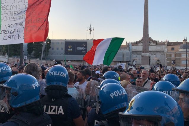 Tensione in piazza del Popolo, a Roma, teatro a partire dalle 18 di una delle tre manifestazioni di protesta della galassia "No Green pass". I manifestanti scesi in piazza, sostanzialmente tutti appartenenti al gruppo di estrema destra di Forza nuova, hanno dato vita a un corteo non autorizzato e hanno provato a forzare il cordone della polizia per andare verso Montecitorio. Le forze dell'ordine hanno risposto con alcune cariche: ci sono stati lanci di bottiglie e fumogeni.