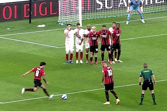 Il gol del vantaggio segnato dal Milan contro il Cagliari andava annullato. La rete segnata da Sandro Tonali su punizione era viziata da una palese violazione del regolamento. Le proteste dei sardi erano legittime in base alle nuove norme introdotte dall'Ifab. Il Var poteva intervenire a correggere la decisione dell'arbitro? No, ecco perché.