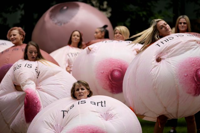 La protesta è stata organizzata a Londra da Vicky Martin, che lavora come tatuatrice medica nel Berkshire: molte delle sue clienti sono donne che hanno subito una mastectomia per via del cancro al seno, a cui Martin "disegna" i capezzoli per aiutarle a vedersi di nuovo "complete" dopo l'intervento.