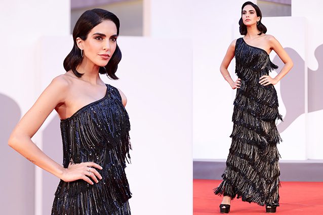Sempre elegante e chic, Rocio Morales non ha deluso le aspettative con i look sfoggiati a Venezia: per l'arrivo al Lido ha indossato un completo grigio dal taglio maschile, con la giacca corta e i pantaloni a vita alta, mentre per il red carpet della settima serata ha scelto un abito monospalla scintillante e sexy.