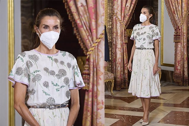 Sappiamo che Letizia Ortiz è una fan della moda sostenibile e riutilizza spesso vecchi abiti, ma questa volta si è superata: l'abito midi a fiori ha ben 40 anni. Apparteneva infatti alla suocera, la regina Sophia, che l'ha indossato nel 1981: a guardarlo non si direbbe mai che ha quasi mezzo secolo alle spalle.