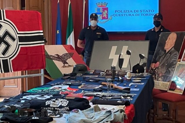 Quattro persone indagate dalla Procura della Repubblica di Torino devono ora rispondere dei reati di propaganda e istigazione a delinquere per motivi di discriminazione razziale etnica e religiosa. Nei loro confronti la Polizia di Stato nelle scorse ore ha condotto diverse perquisizioni durante le quali sono stati trovati numerosi materiali di propaganda nazi-fascista oltre ad armi bianche pericolose ma in un caso anche materiale pedopornografico.