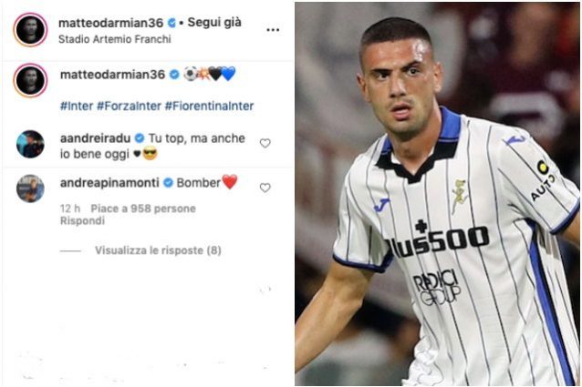 L'Inter ha vinto contro la Fiorentina e i giocatori hanno festeggiato sui social questo successo che proietta i nerazzurri in vetta alla classifica in attesa della gara di domani del Napoli. Darmian ha postato una foto della sua esultanza al 'Franchi' dopo il gol del momentaneo pareggio. Tra i commenti, anche uno sfottò a Demiral: "Tu top, ma anche io bene oggi".