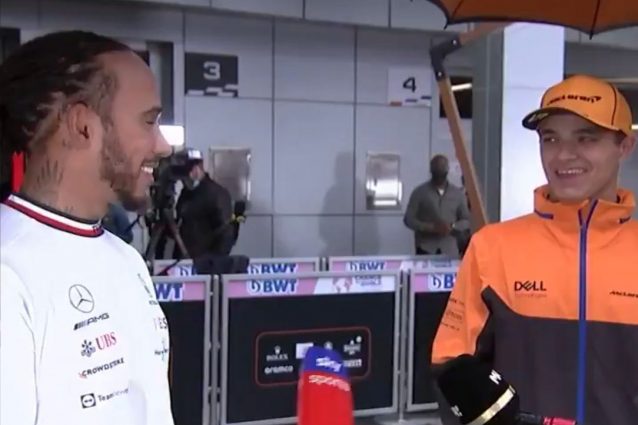 In un simpatico siparietto fuori onda colto dalle telecamere della Formula 1 Lewis Hamilton e Lando Norris svelano cosa è successo nei giri finali del GP di Russia sotto la pioggia con il pilota McLaren che non rientrando ai box per montare gomme da bagnato ha perso l'occasione di conquistare la prima vittoria in F1. Il pilota Mercedes rivela: "Io ho ignorato la prima chiamata del muretto". Il giovane alfiere McLaren fa sorridere tutti: "Io le ho ignorate tutte".