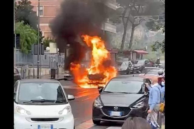 Fiamme divorano un'automobile nel giro di pochi minuti sotto gli occhi sconcertati di decine di persone. Il fatto in pieno giorno, tra via Cilea e via San Domenico, in un tratto di strada solitamente molto trafficato. Ignoti i motivi del rogo.
