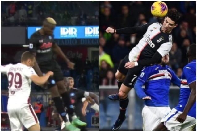Victor Osimhen come Cristiano Ronaldo. L'attaccante del Napoli ha messo a segno un gol bellissimo contro il Torino con uno stacco di testa che ha ricordato molto quello del portoghese contro la Sampdoria nel 2019. Il bomber nigeriano ha è arrivato a svettare fino a 2,52 metri esattamente come accaduto contro il Leicester in Europa League.