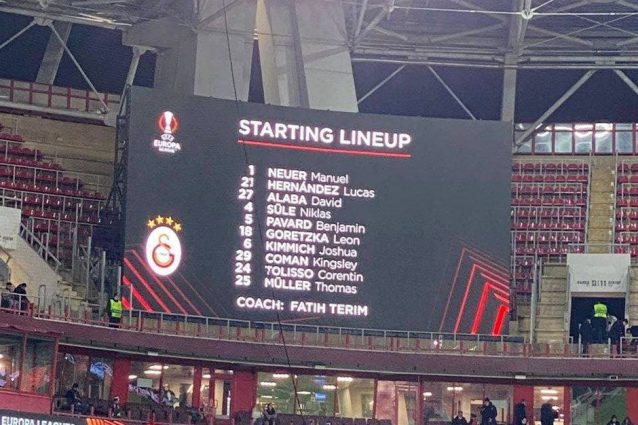 L'errore è stato commesso prima di Lokomotiv Mosca-Galatasaray, gara di Europa League del Girone della Lazio. Sul megaschermo dell'RZD Arena è apparsa una formazione del Bayern Monaco con Fatih Terim come allenatore. Una topica clamorosa unita ad altre due: solo 10 i giocatori schierati in campo, tra cui compare anche il nome di David Alaba, da questa stagione al Real Madrid.