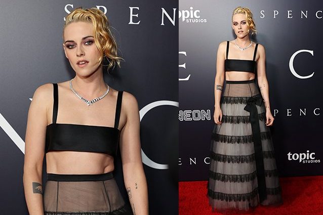 L'attrice Kristen Stewart è famosa per i suoi look ribelli e androgini, ma per presentare il film Spencer ha scelto mise femminili e sofisticate, nel segno della principessa icona di stile. A Los Angeles per esempio ha stupito tutti con un look da "bambola di porcellana": gonne a balze e pizzo.