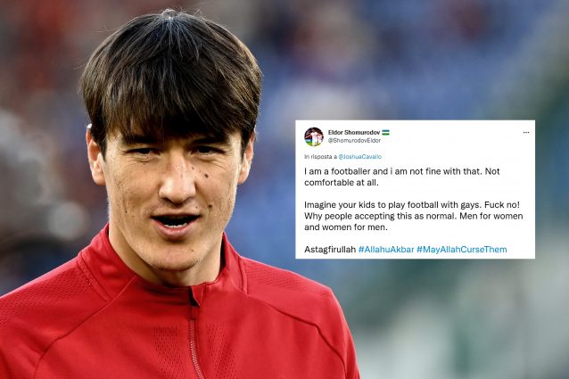 Un tweet che esprimeva frasi offensive nei confronti degli omosessuali ha sollevato un polverone nei confronti del calciatore della Roma, Shomurodov. Il club capitolino ha smentito che l'account Twitter fosse del giocatore. Si è trattato di un fake, un caso scoppiato nella serata di ieri quando l'attaccante era in panchina a Cagliari.
