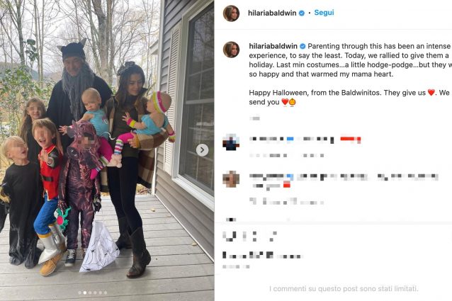 Hilaria Baldwin, moglie dell'attore Alec Baldwin, ha condiviso un album di famiglia in occasione di Halloween. Dopo lo sparo, è la prima immagine che li ritrae con i sei figli sorridenti. "Fare il genitore in questo momento è un’esperienza intensa, come minimo. Oggi ci siamo ripresi per dar loro una giornata di festa. Costumi last minute, un po’ di tutto rimescolato, ma erano così felici e mi hanno riscaldato il cuore", ha scritto.