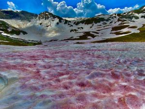 Lo strano fenomeno della neve rossa è apparso anche sulle Orobie, in particolare in Alta Val Cerviera, nella Bergamasca dove alcuni escursionisti hanno fotografato il suggestivo manto bianco ricoperto da una coltre rosso porpora. Ma c'è una spiegazione scientifica dietro quesa improvvisa colorazione della neve causata dalle temperature elevate.