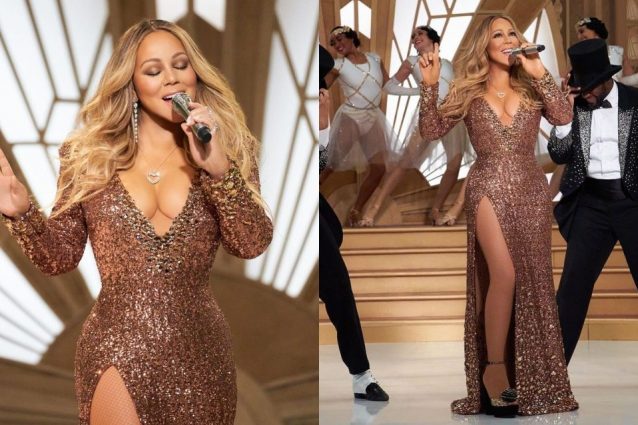 Mariah Carey è la regina del Natale e lo ha dimostrato anche quest'anno. È diventata protagonista del primo concerto delle feste e per l'occasione ha brillato con uno scintillante abito di paillettes, osando con una maxi scollatura.