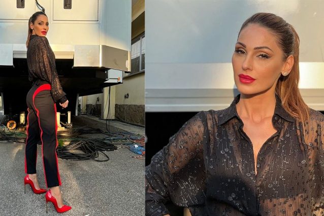 Anna Tatangelo a All together now: la semifinale è con camicia trasparente e dettagli rosso fuoco