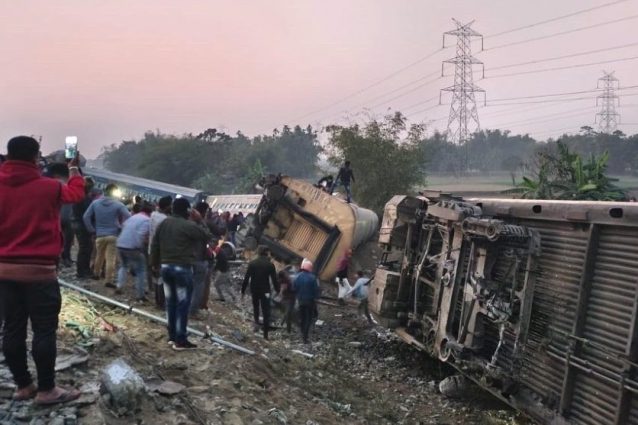 Le carrozze di testa del treno sono uscite dai binari, alcune delle quali capovolgendosi e intrappolando i passeggeri a bordo nello stato del Bengala occidentale.
