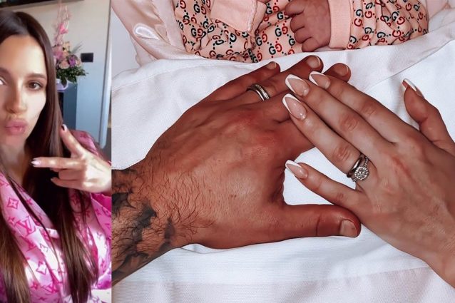Alessia Macari e Oliver Kragl hanno accolto in famiglia la loro primogenita Nevaeh. Il primo look da mamma della ex ciociara è in vestaglia rosa di Louis Vuitton.