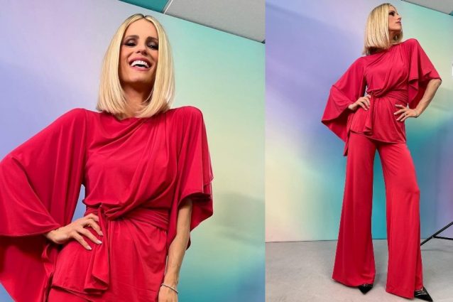 Michelle Hunziker è stata tra gli ospiti speciali della puntata domenicale di Verissimo, dove ha presentato ufficialmente Michelle Impossible, il suo prossimo nuovo programma. Non ha rinunciato all'eleganza che da sempre la contraddistingue: sul palco ha sfoggiato un completo glamour rosso fuoco.