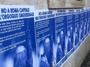 Questa mattina sono comparsi da Repubblica a Colosseo manifesti firmati dalle associazioni estremiste cattoliche contro il Gay Pride, che si svolgerà oggi a Roma col patrocinio del Comune.
