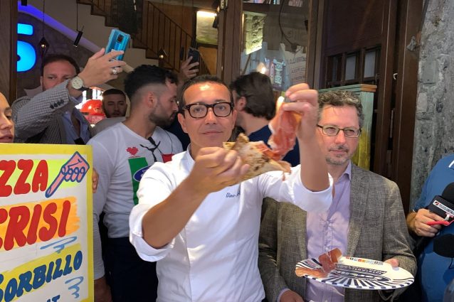 Grande folla in via Tribunali per "rispondere" a Flavio Briatore e alla sua provocazione sul costo della pizza. Sorbillo: "Un piatto del popolo, e così resterà"