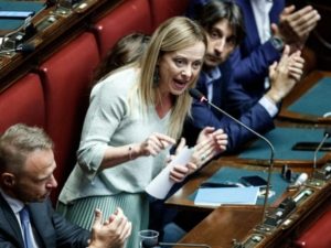 Giorgia Meloni in Aula si scaglia contro la maggioranza del governo Draghi: "Siamo oggi più fieri di ieri di trovarci all'opposizione di un governo privo di visione e privo di identità di fronte alle grandi sfide della storia".