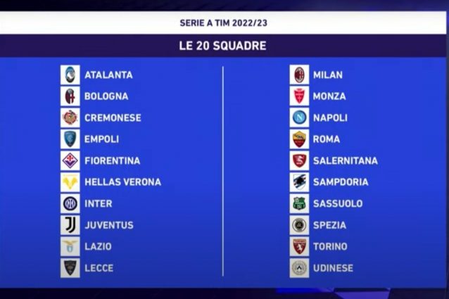 Pubblicato il 24 Giugno 202215 Agosto 2022 di Michele MazzeoIl calendario completo della Serie A 2022/2023: partite, risultati e gli orari giornata per giornata Il Calendario della Serie A 2022-2023: tutte le partite delle 38 giornate del campionato italiano.Continua a leggere