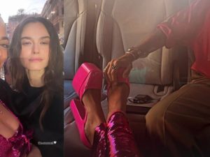 C'era anche Elodie in Piazza di Spagna a Roma dove Valentino ha presentato la Haute Couture Autunno/Inverno 2022-23. La cantante ha scelto un look total pink.