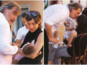Pierluigi Pardo e Lorenza Baroncelli sono stati immortalati a Siena con il piccolo Diego, il figlio nato lo scorso 14 giugno: "Siamo al settimo cielo".