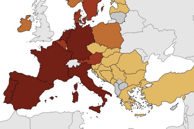 Secondo la mappa dell'Ecdc aggiornata al 3 agosto con i numeri del vaiolo delle scimmie, l'Italia è colorata di rosso scuro, con oltre 500 casi confermati. Allerta in Spagna, Portogallo, Germania, Francia e Paesi Bassi.