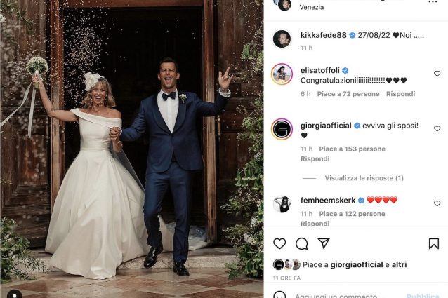 Pubblicato il 28 Agosto 2022 di Redazione Spettacolo“Viva gli sposi” gli auguri a Federica Pellegrini e Matteo Giunta del mondo dello Spettacolo Dal mondo dello Spettacolo e dello Sport sono stati tantissimi gli auguri social per i neosposi Federica Pellegrini e Matteo Giunta.Continua a leggere