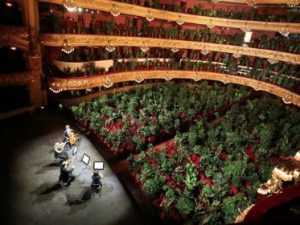 Il Gran Teatro del Liceu di Barcelona riapre dopo il lungo periodo di chiusura dovuto al lockdown e alla crisi sanitaria da Coronavirus in Spagna. Per l'occasione un quartetto d'archi si è esibito in "Crisantemi" di Giacomo Puccini al cospetto di 2292 piante da vaso che saranno regalate ai medici e infermieri impegnati nella lotta contro il Covid-19.
