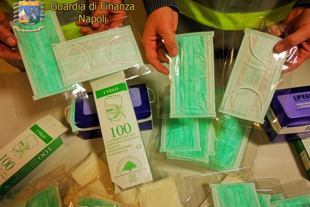 La Guardia di Finanza di Napoli, impegnata insieme alle altre forze dell'ordine per l'emergenza coronavirus, nei primi mesi del 2020 ha sequestrato due milioni di mascherine e oltre 21mila litri di prodotti igienizzanti venduti come disinfettanti. Il dato nel bilancio consuntivo del 2019 e della metà 2020 presentato nella caserma Zanzur, a Napoli.