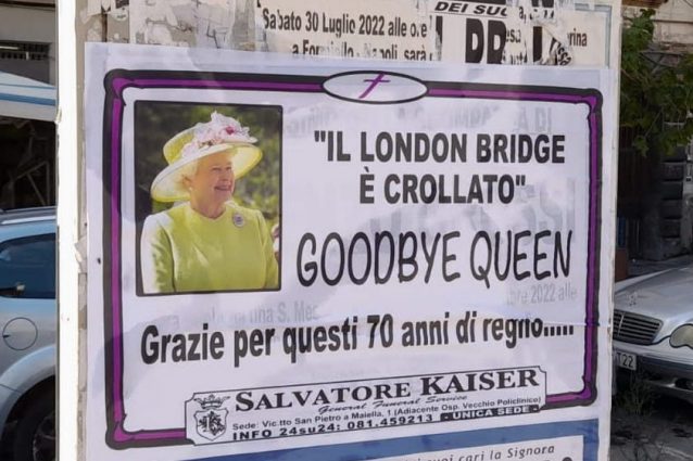 Il cordoglio di Napoli per la Regina Elisabetta II: manifesti funebri in città, il maestro Di Virgilio le dedica una statua nel presepe. A Sorrento bandiere inglesi a mezz'asta.