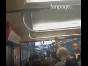 Il video, girato durante il violento acquazzone di stamattina e rilanciato sui social, mostra un copioso rivolo d'acqua penetrare dal tetto nel vagone di un treno.