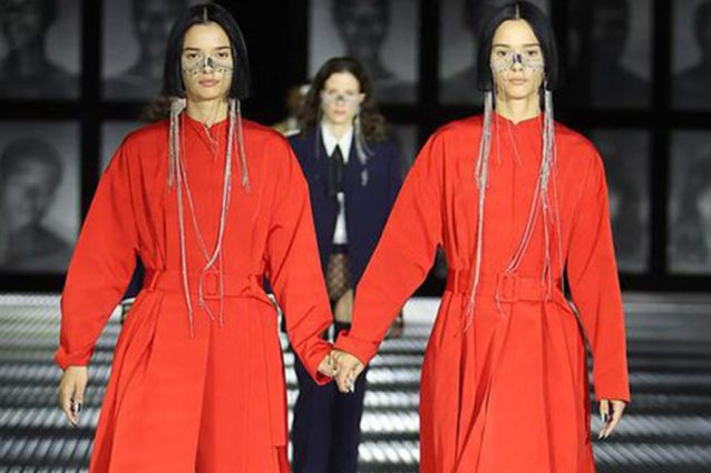 La sfilata Gucci Twinsburg, presentata alla Milano Fashion Week, è stata chiusa da coppie di gemelli vestiti uguali, in un gioco tra illusione e realtà.