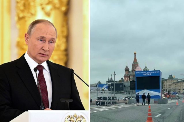 Nella capitale russa già allestiti palchi, cartelloni patriottici e maxischermi da cui sarà dato l'annuncio dell'annessione alla Russia delle quattro regioni occupate in Ucraina: Donetsk, Lugansk, Kherson e Zaporizhzhia.