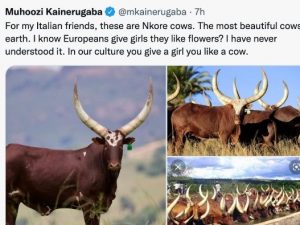 Il figlio del presidente dell'Uganda, il generale Muhoozi Kainerugaba, ha offerto a Giorgia Meloni, premier in pectore, 100 mucche. Sui social scoppia il caso per l'insolita proposta, con evidenti scopi denigratori.