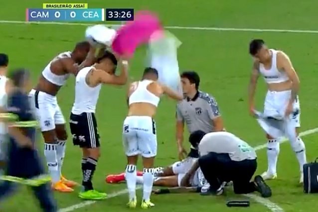 L'episodio avviene intorno alla mezzora del primo tempo, durante il match tra Atletico Mineiro e Ceará. Il colpo alla testa è violento, il calciatore crolla sul prato.