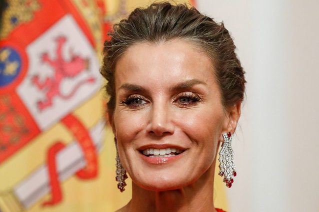 Letizia di Spagna è in viaggio in Germania assieme al marito re Filippo VI. In occasione di una cena di gala ha incantato i presenti con un look rosso fuoco.