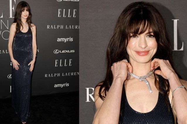 Ieri sera Los Angeles ha ospitato un evento glamour organizzato dalla rivista Elle e tra gli ospiti noti c'era anche Anne Hathaway. L'attrice ha brillato con un sinuoso abito di paillettes, incantando tutti con maxi scollo sulla schiena e collana serpente.