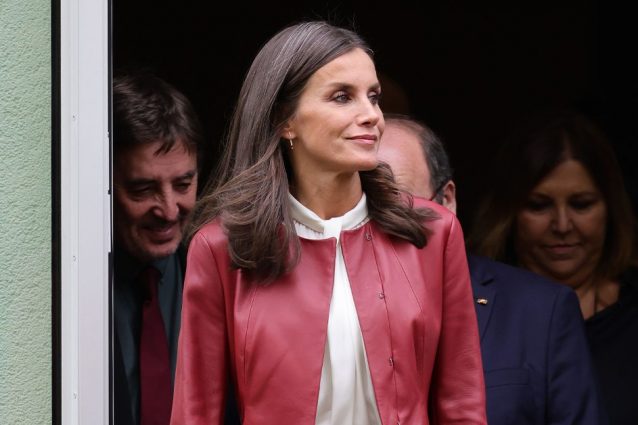 La regina Letizia di Spagna si trova in Germania per una visita di stato e ha stupito tutti indossando una gonna aderente in pelle e un paio di scarpe con la punta a contrasto.