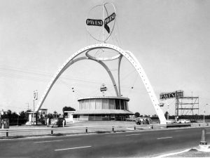 Lavori in corso nell'area di servizio Villoresi Ovest sull'Autostrada A8 Milano-Varese. Parte del famoso autogrill del 1958, l'astronave con la caratteristica cupola sopraelevata, è stata demolita nell'ambito di lavori di ristrutturazione decisi dalla società Autogrill. Il "disco volante" che ospitava bar e ristorante non c'è più: restano, ben visibili, gli archi autoportanti.