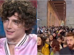 Fan in delirio per Timothée Chalamet che nel weekend è stato a Milano per la presentazione di Bones And All e per l'intervista a Che tempo che fa: costretto a saltare il red carpet per colpa dell'assalto dei fan, a Fabio Fazio ha confessato di sentirsi a casa quando viene in Italia.