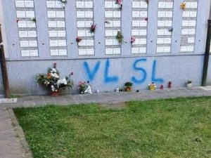 Sul muro e alla base del monumento infatti sono appare le scritte 'VL' e 'SL', sigle che potrebbero richiamare i Vernichtungslager e gli Straftslager così come i nazisti chiavano i campi di sterminio e i campi di punizione. l gesto probabilmente è stato messo in atto tra la notte di sabato e domenica .