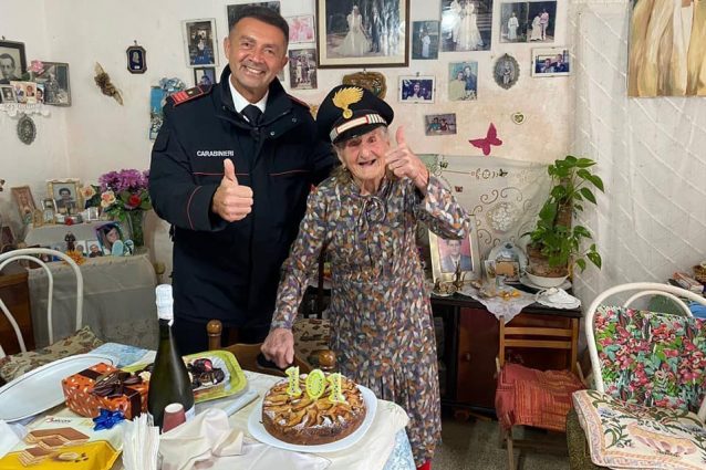 Zia Rosina è stata festeggiata dai carabinieri di Favignana nel giorno del suo 101esimo compleanno quando, a causa del maltempo, i suoi parenti non sono riusciti a raggiungerla sull'isola siciliana.