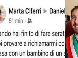 Rimprovero social per il sindaco di Rieti, Daniele Sinibaldi: "Quando hai finito di fare serata, magari se hai un attimo puoi provare a richiamarmi considerando che sono da sola a casa con un bambino di un anno!".