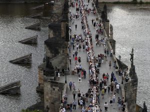 Una festa per dire "addio" al coronavirus in Repubblica Ceca. È quella andata in scena a Praga, dove in migliaia, dopo un annuncio su Facebook, hanno celebrato senza distanziamento sociale la fine delle restrizioni imposte a causa dalla pandemia con una grande cena aperta a tutti organizzata sul Ponte Carlo.