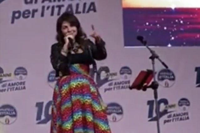 La cantante risponde con i simboli alle polemiche per la sua partecipazione alla festa di Fratelli d'Italia, da molti criticata perché ritenuta contraddittoria rispetto alle sue partecipazioni passate al pride.