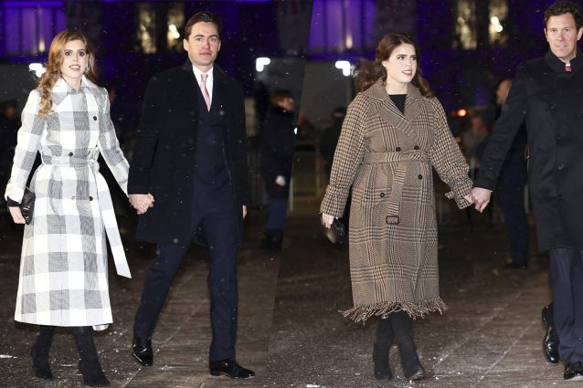Beatrice e Eugenia di York, sorelle di stile: al concerto di Natale con i cappotti a quadri